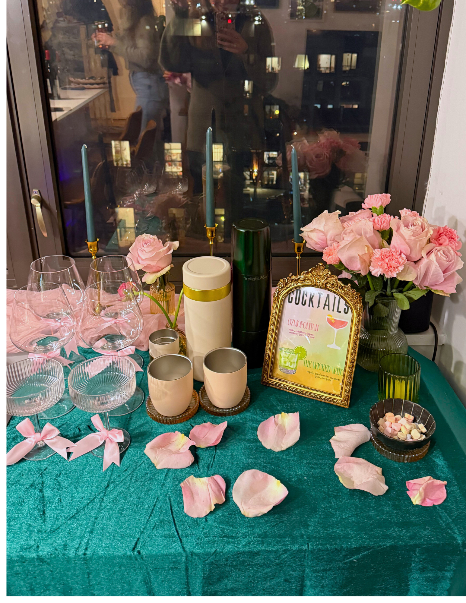 This year, I really wanted to lean into that. An intentional night centered around friendship, fun, and went beyond just a regular Galentine’s theme. And what better way to do that than with a Wicked-themed Galentine’s party?! Inspired by the iconic green and pink color palette and brought to life through themed cocktails, festive food (including a yellow brick road charcuterie board hello?!), whimsical decor, and a vibe that felt equal parts cozy and celebratory.