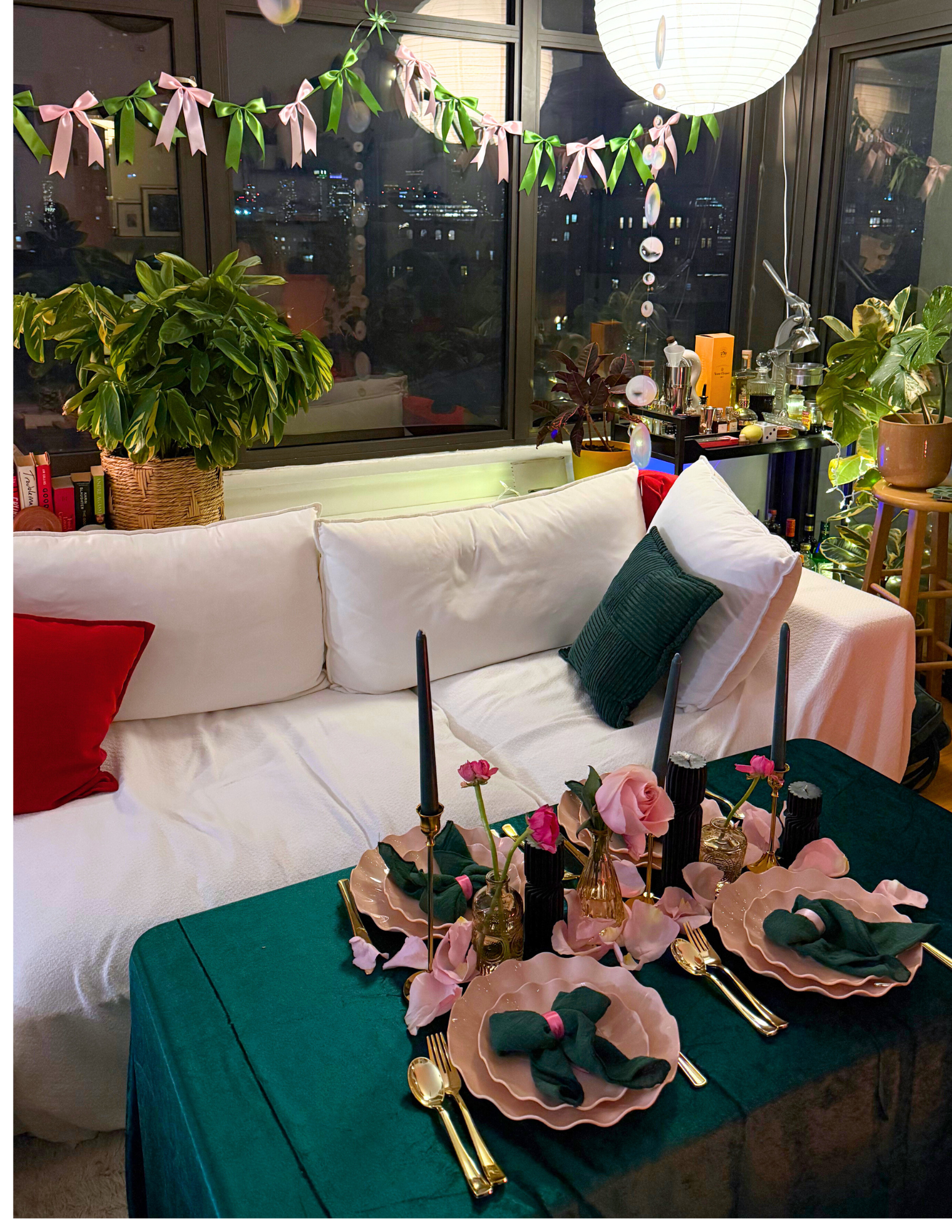 When I host a dinner party, you know I’m going all out on the food always, but this time I wanted to go all out on the decor too. I wanted the apartment to feel magical as soon as you walked in, almost like you were stepping into Oz. It was so fun playing around with a mix of colors, textures, florals, and little details that made the night extra special. I added everything I used to created the theme here to make it easy for you to recreate the look!