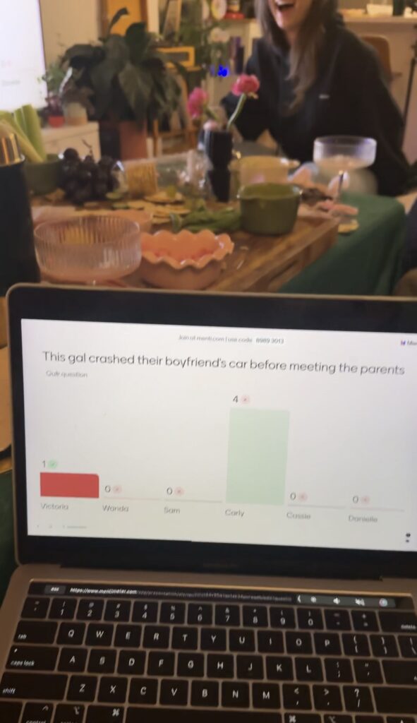 Before the party, each girl anonymously submitted five trivia questions about herself. I randomized the questions, and throughout the game we had to guess which friend each question was about. It was funny, chaotic, and surprisingly sweet—such an easy way to celebrate everyone in the room.